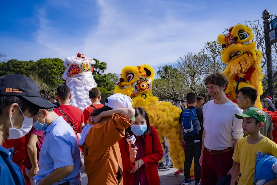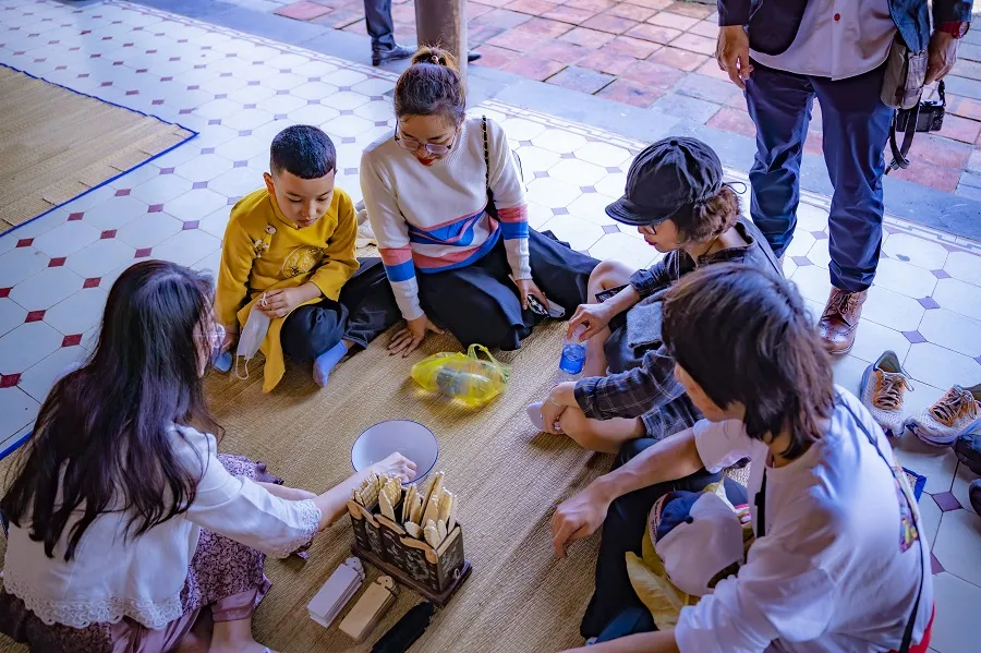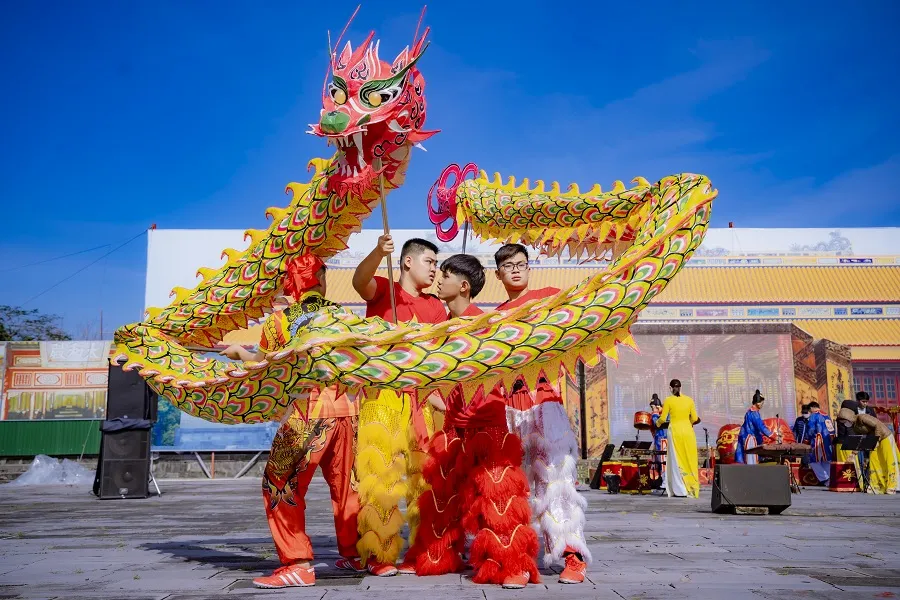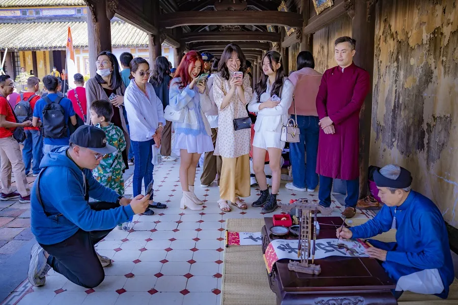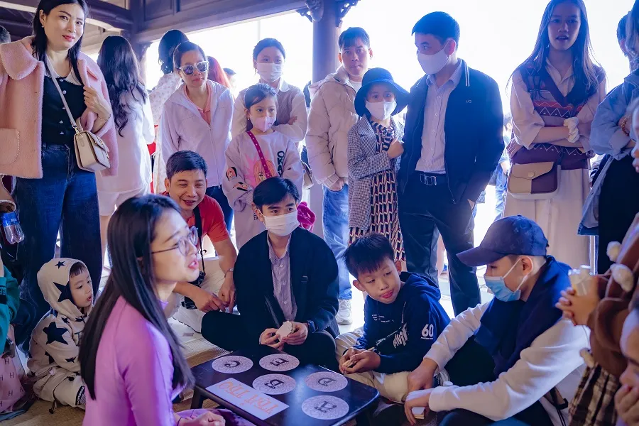 Theo ghi nhận, sau tiếng trống rộn ràng cùng với màn múa lân “Cung chúc tân Xuân”, du khách được trải nghiệm các nghi thức và trò chơi dân gian cung đình do Trung tâm Bảo tồn di tích Cố đô Huế tổ chức. Trong đó, nhiều trò chơi trong cung đình dưới triều Nguyễn vào ngày tết như bài vụ, đổ xăm hường, đầu hồ, đối thơ… được tái hiện ngay tại sân điện Thái Hòa.
