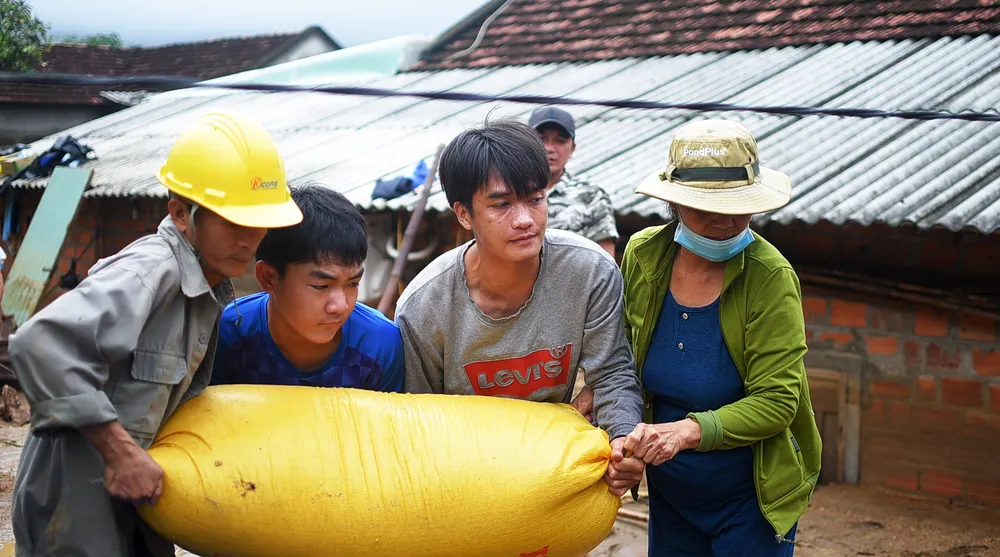 Từ sáng 19-11, Tỉnh đoàn Bình Định đã huy động trên 100 đoàn viên, thanh niên từ các cơ sở đoàn công an tỉnh, các đại học, cao đẳng ở TP Quy Nhơn, Bộ Chỉ huy Quân sự tỉnh… đến để giúp người dân vùng sạt lở núi Cấm dọn dẹp hàng tấn bùn đất sạt lở.