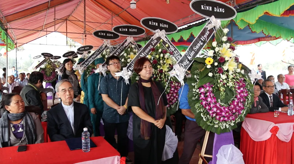 Tất cả chúng tôi có mặt tại đây xin được thành kính dâng hương và cúi đầu tạ tội. Từ nơi xa xôi, những người bạn Hàn Quốc không thể đến tham dự buổi lễ hôm nay vẫn thắp lên một nén tâm nhang và cúi đầu mặc niệm, cầu xin sự bình an cho những linh hồn đã khuất.