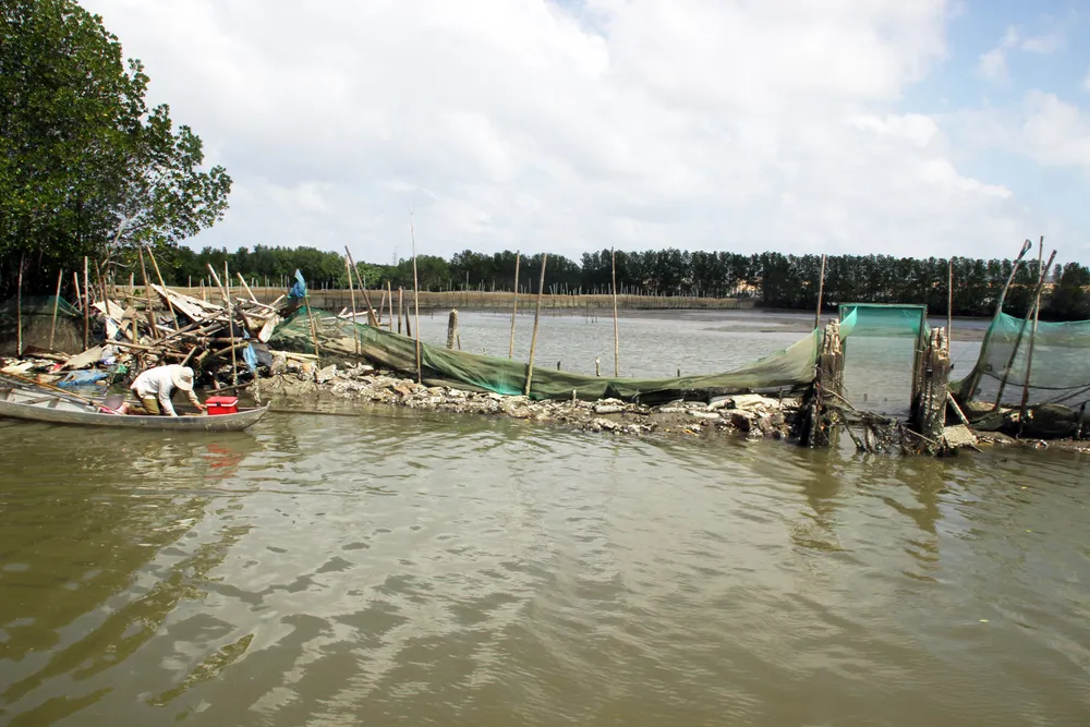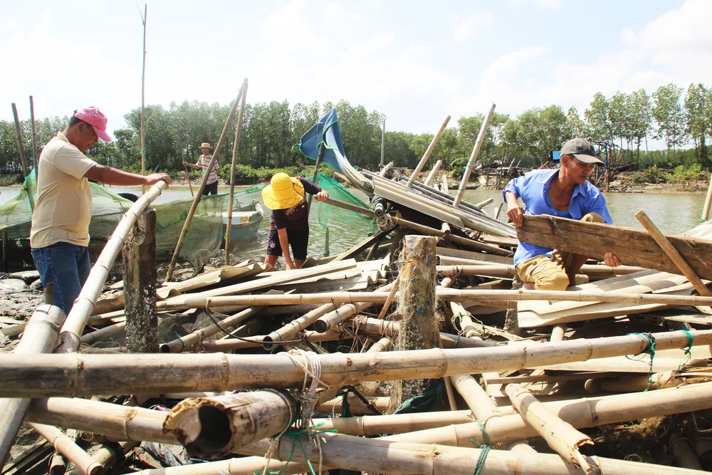 Chòi canh hải sản của người dân xóm Cồn Chim tan nát
