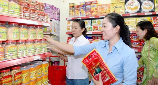 Mua thực phẩm chế biến phục vụ bình ổn thị trường do doanh nghiệp Việt Nam sản xuất. Ảnh: CAO THĂNG