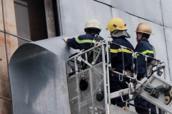 Cảnh sát PCCC quận 8 tháo dỡ những tấm tôn có nguy cơ rơi xuống đường.
