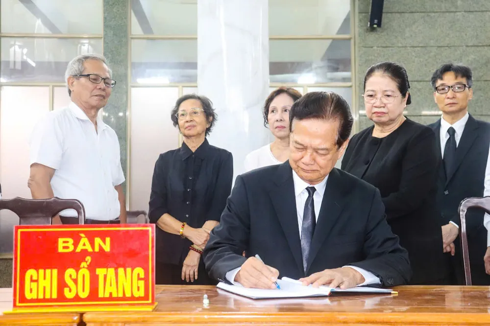 Nguyên Thủ tướng Nguyễn Tấn Dũng viết trong sổ tang: “Ngày 10-4-2025. Vô cùng thương tiếc vĩnh biệt Giáo sư, Tiến sĩ Phan Lương Cầm, phu nhân Thủ tướng Võ Văn Kiệt!”