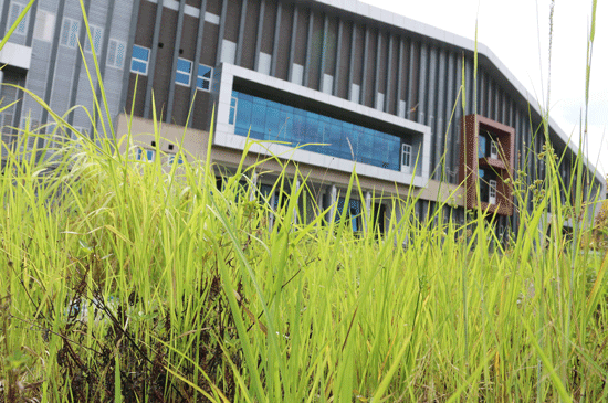 Vì bỏ lâu nên xung quanh nhà hát, cỏ mọc um tùm