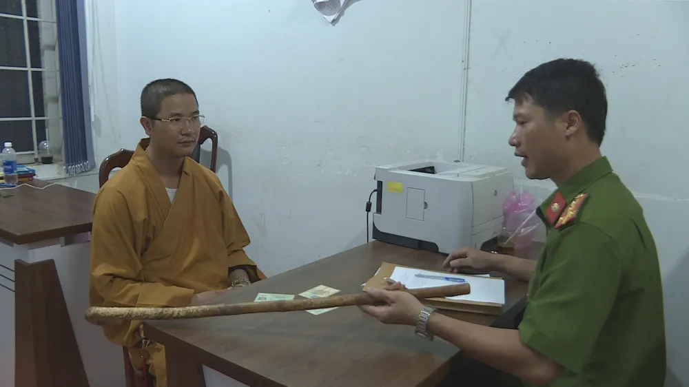 Bức xúc vì không cho vượt, nhà sư tu hành tại chùa Sắc Tứ Khải Đoan đã dùng gậy tre đập gãy kính chiếu hậu và vỡ kính xe ô tô của người đi đường.