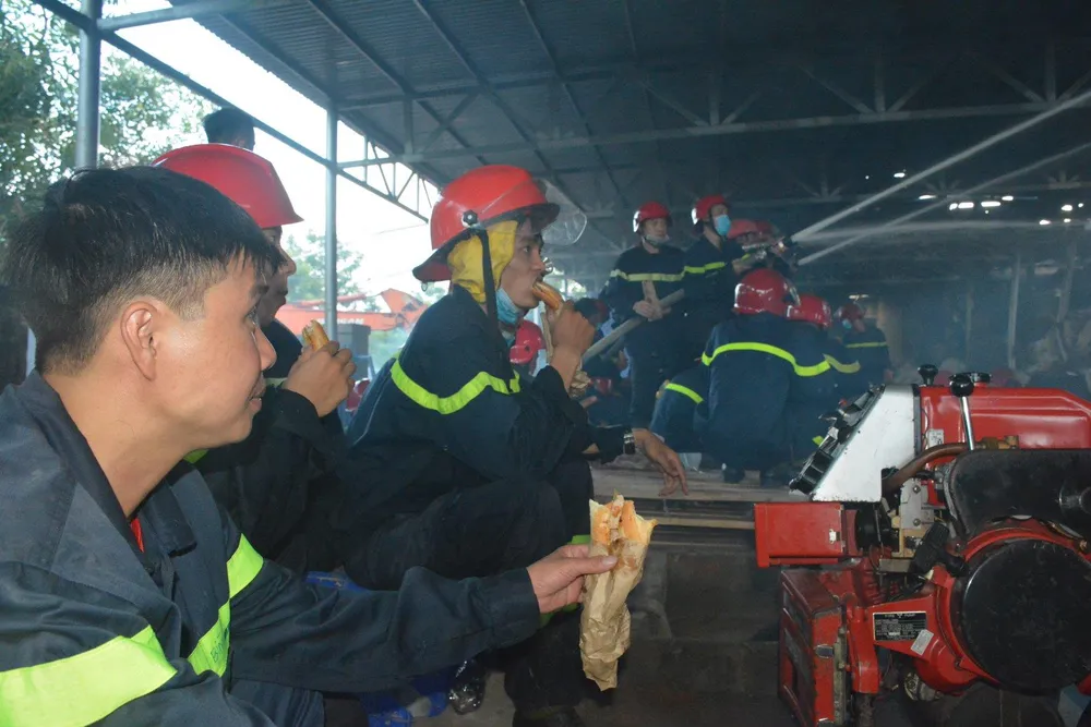 Thời gian chữa cháy quá dài, cả ngày lẫn đêm nên cán bộ chiến sĩ PCCC Công an tỉnh Thừa Thiên – Huế đành phải thay nhau, người dùng vòi phun nước, người uống nước lọc, người nhai vội mẩu bánh mì cầm hơi trên mái tôn nhà kho giữa trời nắng nóng, rồi lại tiếp tục làm nhiệm vụ thay cho người khác ra tạm nghỉ…