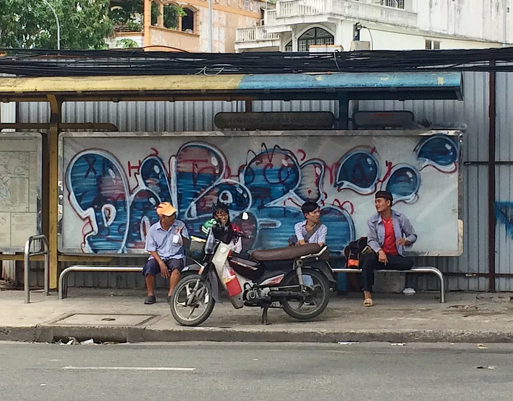 Tại các nhà chờ xe buýt trong nội thành, không khó nhìn thấy hình ảnh do những “họa sĩ đường phố” xịt sơn, vẽ bậy. Các bảng hiệu trong nhà chờ trở thành nơi để những “nghệ sĩ” này sáng tạo đủ loại ngôn ngữ, gây mất mỹ quan đô thị, phản cảm với người nhìn.
