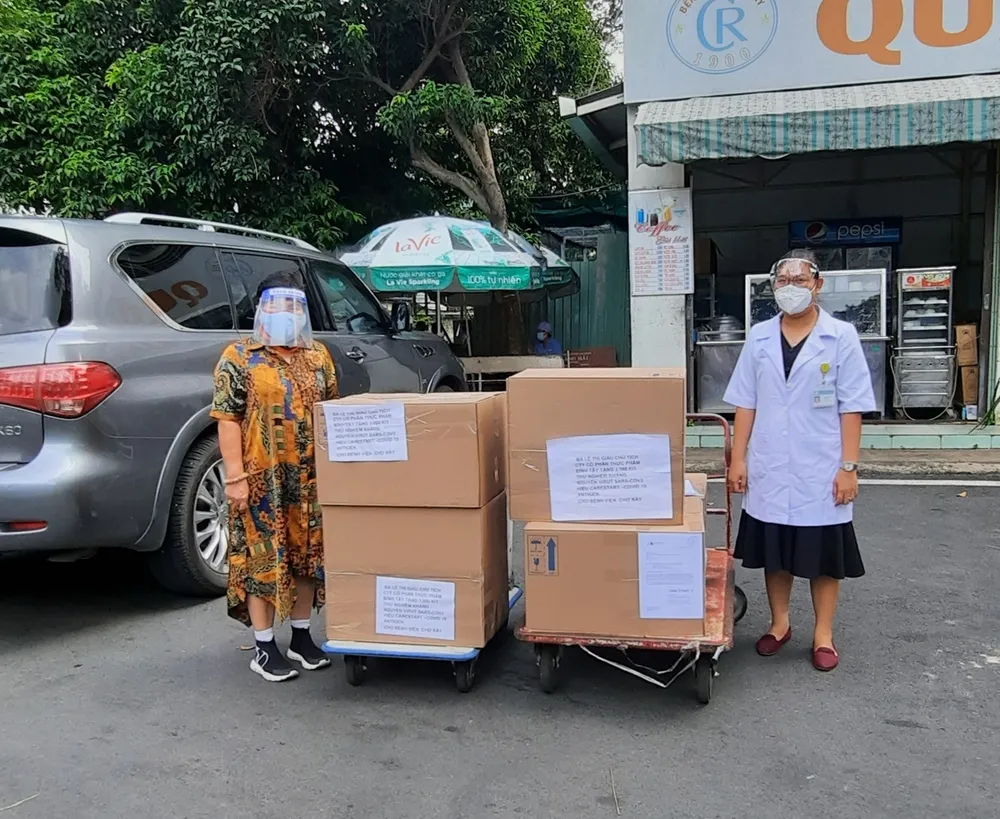 Trong đó có 3.000 bộ test nhanh hỗ trợ Bệnh viện Chợ Rẫy và Bệnh viện Hồi sức Covid-19 tại Bệnh viện Ung bướu, cơ sở 2 (thành phố Thủ Đức). Tổng giá trị thiết bị y tế trên là hơn 500 triệu đồng được trích từ lợi nhuận Công ty CP Thực phẩm Bình Tây và cá nhân nữ doanh nhân Minh Nguyệt đóng góp.
