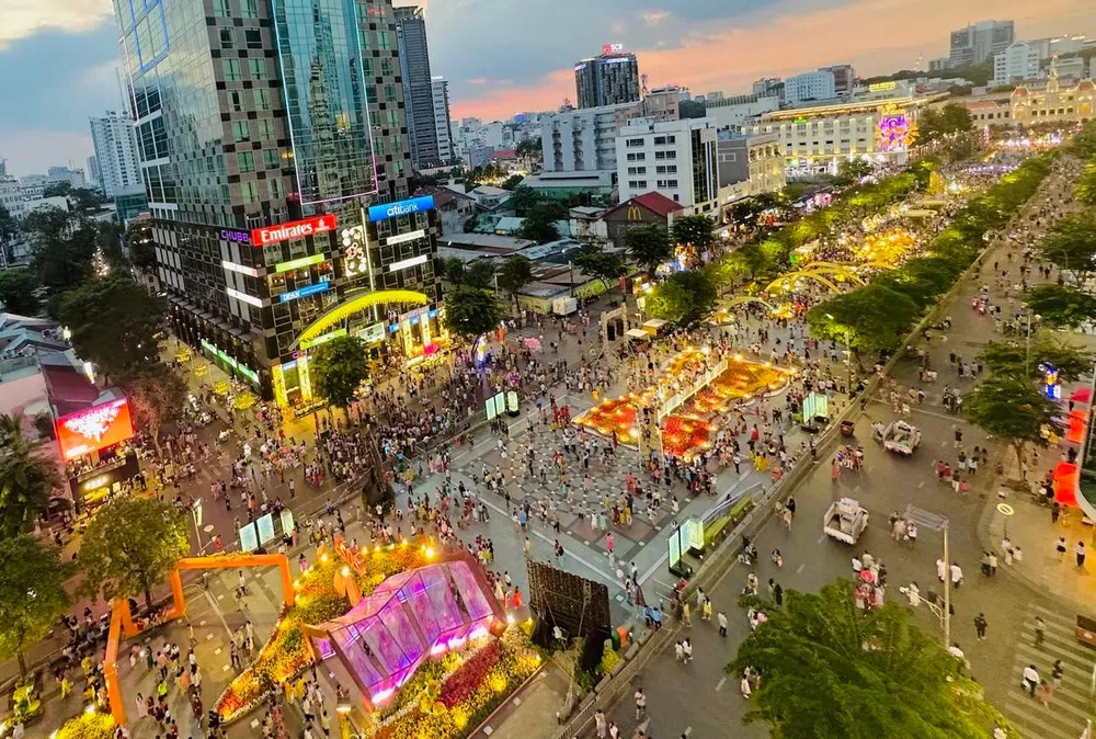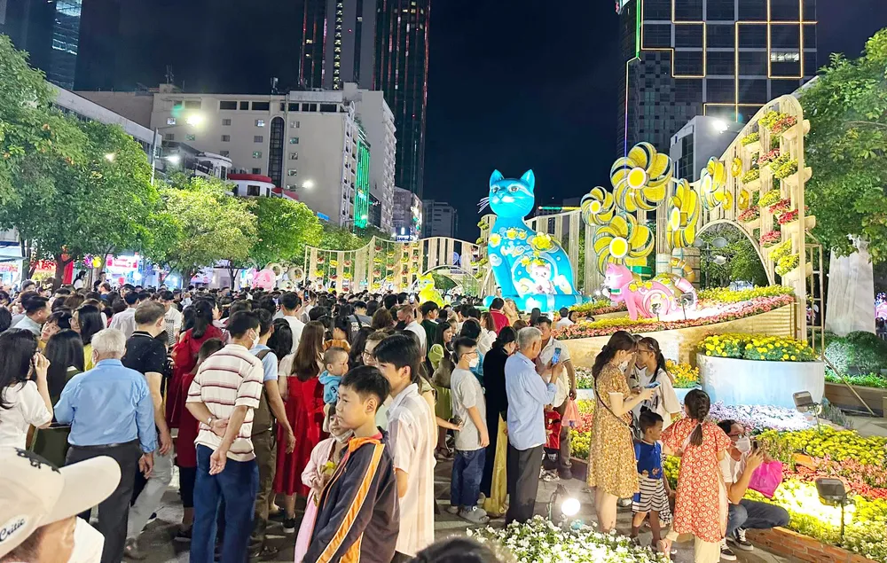 Ngay từ sáng sớm đến tối, người dân nô nức du xuân, đến các khu vui chơi tại trung tâm như Đường hoa Nguyễn Huệ, Lễ hội sách TPHCM, hội hoa xuân Tao Đàn, Thảo cầm viên Sài Gòn, không gian tết Việt tại Nhà Văn hóa Thanh niên TPHCM... để lưu lại những khoảnh khắc đẹp trong ngày đầu tiên của năm mới.