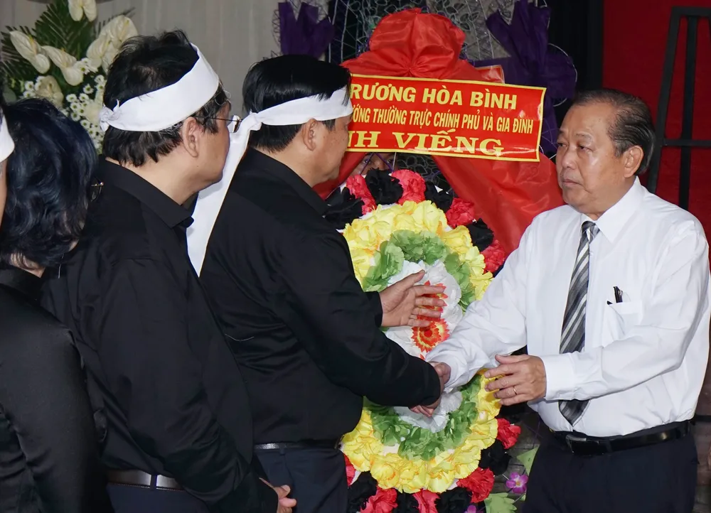 Đồng chí Trương Hòa Bình chia buồn với gia quyến nhà báo Nguyễn Thị Vân. Ảnh: HOÀNG HÙNG