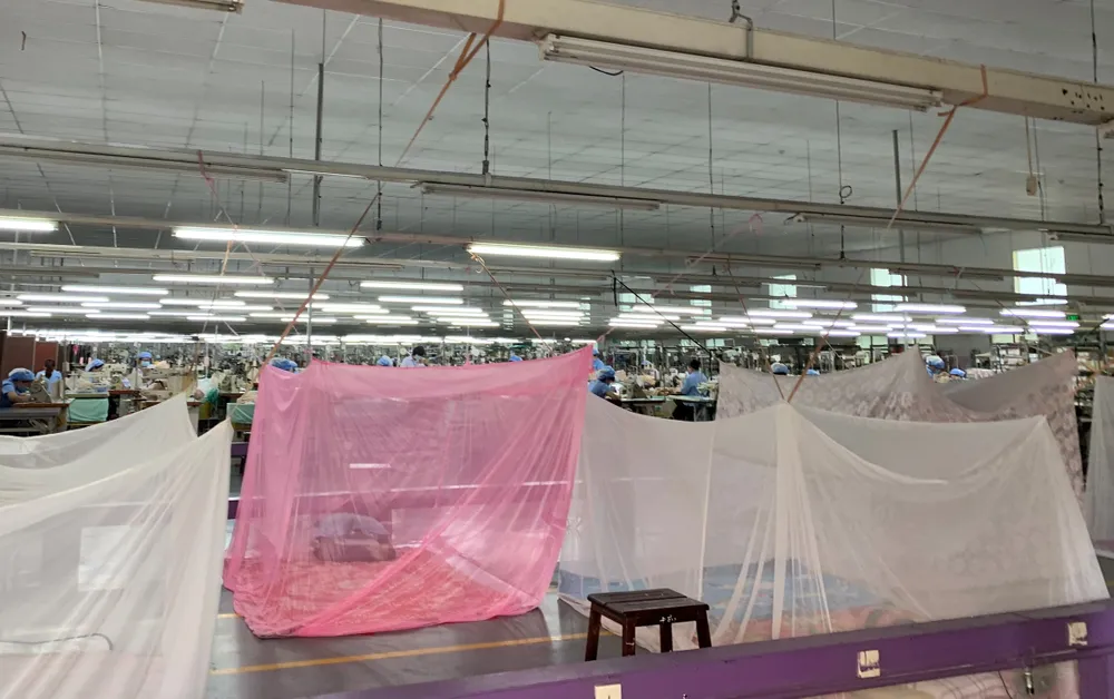 Để đảm bảo yêu cầu vừa sản xuất vừa chống dịch, công ty chỉ hoạt động 3 trong 5 nhà máy, 2 nhà máy còn lại và khu văn phòng được trang bị đủ vật dụng để làm khu dã chiến cho công nhân ăn, ngủ, sinh hoạt, nghỉ ngơi.