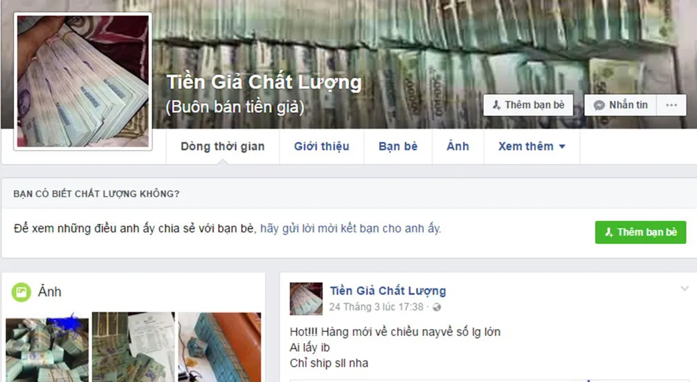 Trang facebook cá nhân rao bán tiền giả