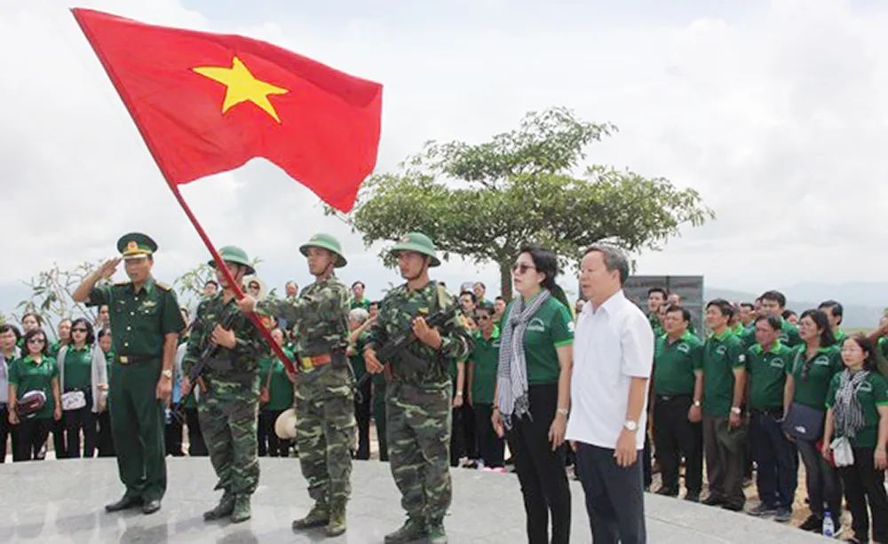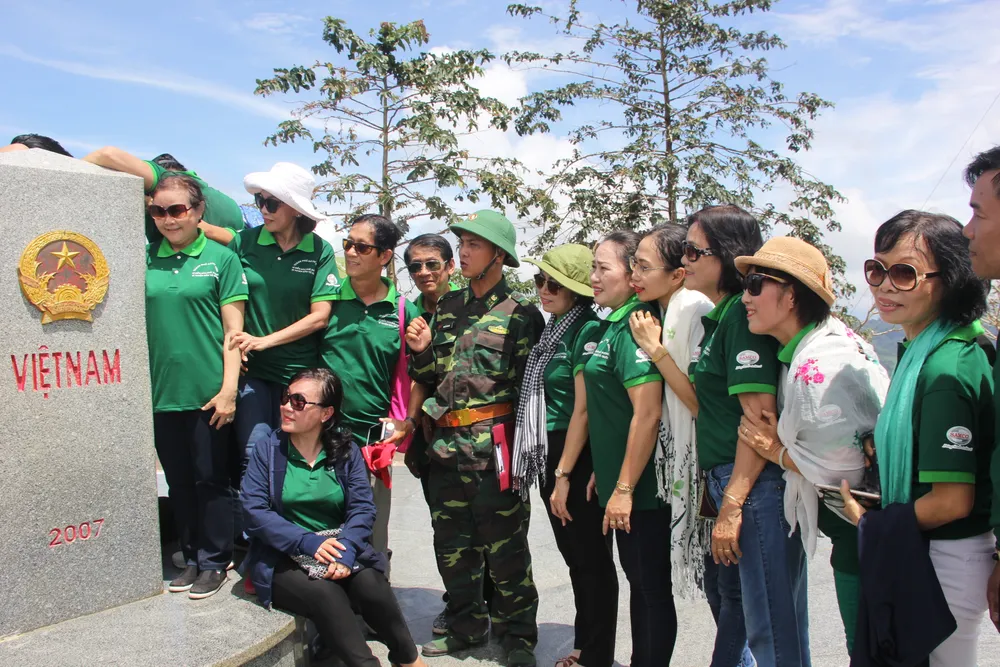 Đoàn cũng tham quan cột mốc biên giới tiếp giáp 3 nước Đông Dương Việt Nam - Lào - Campuchia.