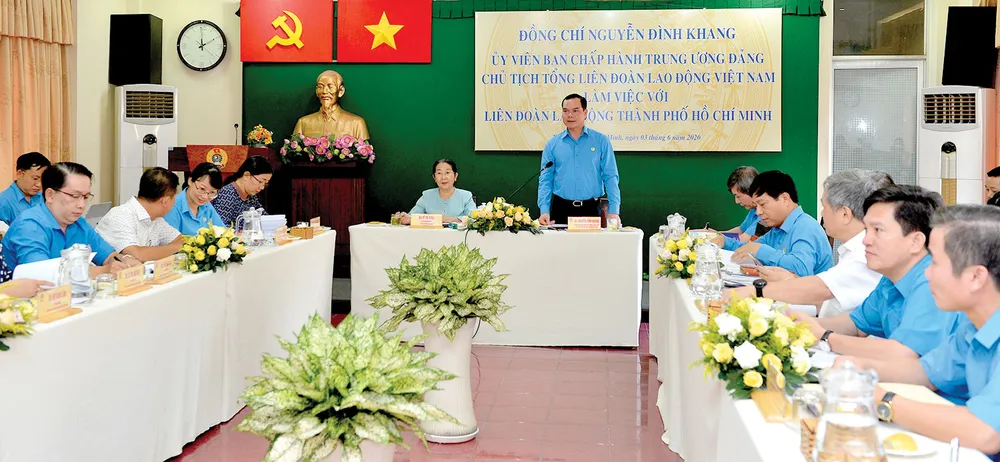 Đồng chí Nguyễn Đình Khang đánh giá cao hoạt động của các cấp công đoàn TPHCM thời gian qua, nhất là trong dịch Covid-19, tổ chức công đoàn TP đã có sự vào cuộc sớm, triển khai nhanh việc hỗ trợ người lao động bị ảnh hưởng. Nhiều hoạt động hay, thiết thực cũng được triển khai, giúp người lao động thêm động lực vượt qua khó khăn. Trong thời gian tới, Chủ tịch Tổng LĐLĐ Việt Nam đề nghị LĐLĐ TPHCM tiếp tục cụ thể hóa các mục tiêu, chương trình, kế hoạch mà Đại hội XII Công đoàn Việt Nam đã đề ra; triển khai sớm kế hoạch phối hợp giữa Ban Thường vụ Thành ủy TPHCM và Đảng đoàn Tổng LĐLĐ Việt Nam đã ký kết. Ngoài ra, cần tập trung phát triển đoàn viên trong những khu vực dịch vụ, công nghệ cao, phi kết cấu không có quan hệ lao động, từ đó xây dựng một hình mẫu chung cho tổ chức công đoàn Việt Nam.