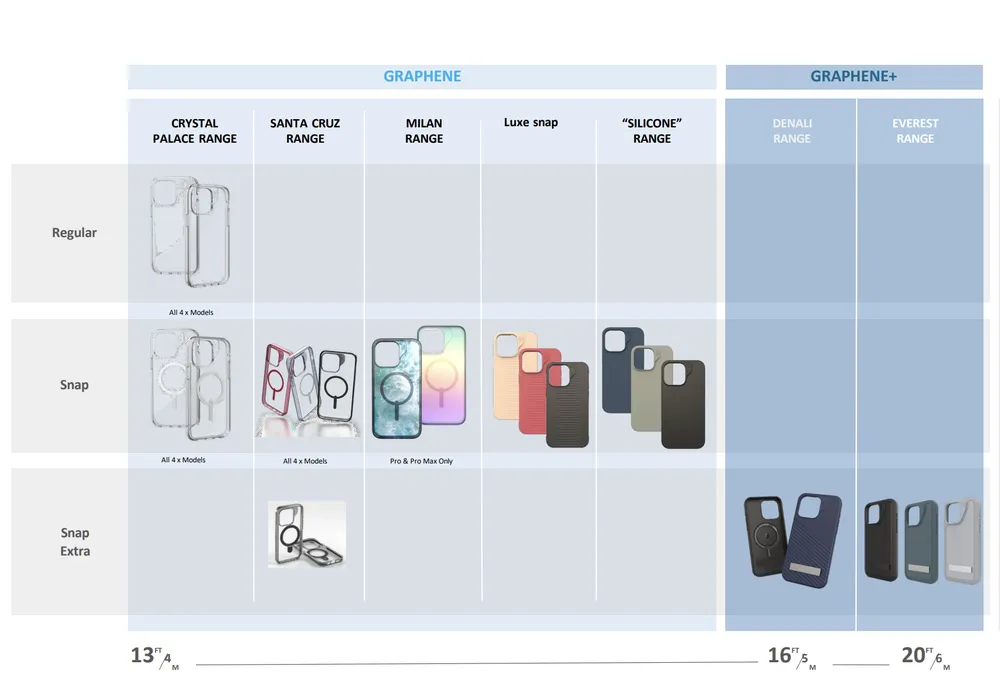 Graphene được biết đến là vật liệu có những tính năng: Cứng hơn kim cương, đàn hồi hơn cao su và bền gấp 200 lần so với thép. Nhờ vậy, khi ứng dụng Graphene vào sản xuất ốp lưng cho dòng iPhone 15 mới, Zagg đã nâng khả năng chống sốc, bảo vệ điện thoại khỏi rơi vỡ lên đến tận 6m, phá vỡ kỷ lục chống sốc 5m đã có trước đây.