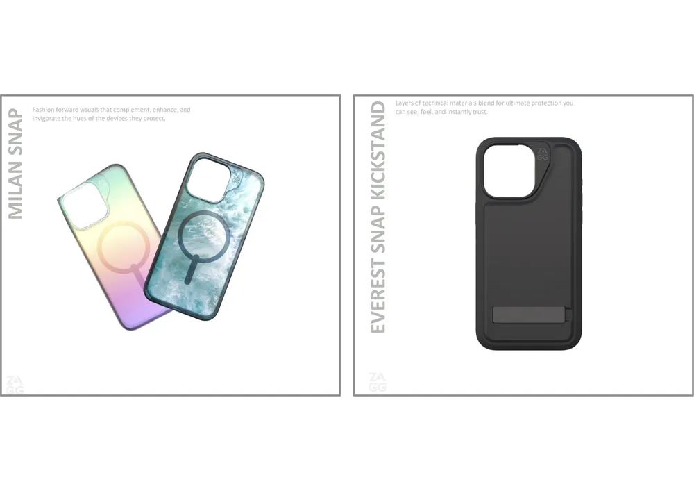Mỗi tên gọi của ốp Zagg Graphene đều gắn với một địa điểm nổi tiếng trên thế giới để thể hiện ưu điểm của mình. Tên gọi Everest để chỉ chiếc ốp có khả năng chống sốc cao nhất 6m. Dùng cái tên Milan, thủ đô thời trang nước Ý để chỉ chiếc ốp có màu sắc độc đáo, đổi màu theo từng góc độ…