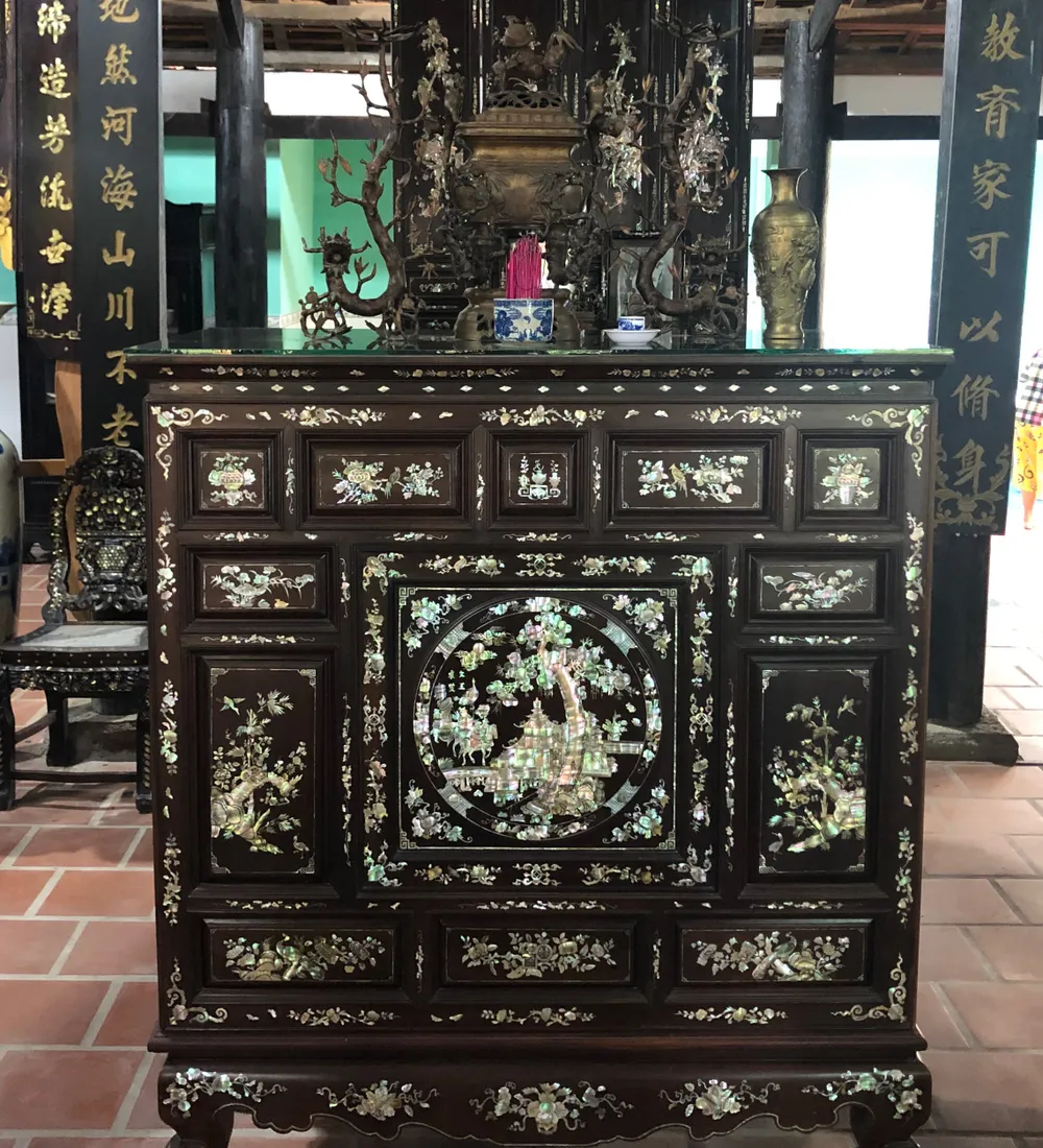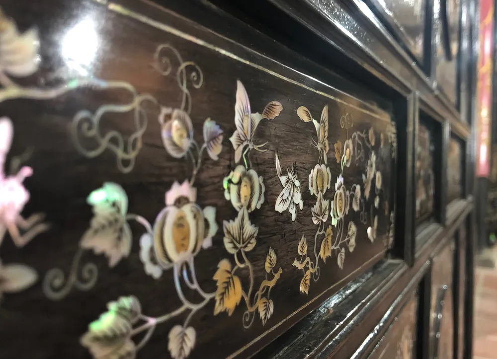 Họa tiết trên tủ thờ rất bắt mắt. Theo anh Tuấn, những tủ thờ này thường chỉ các gia đình quý tộc mới sử dụng