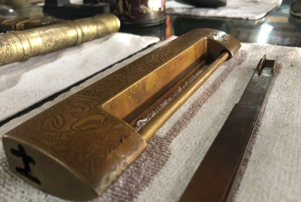 Những thanh kiếm bằng đồng nguyên khối hiện vẫn còn sáng. Do là đồng nguyên khối nên không bị rỉ sét đã có tuổi cả trăm năm
