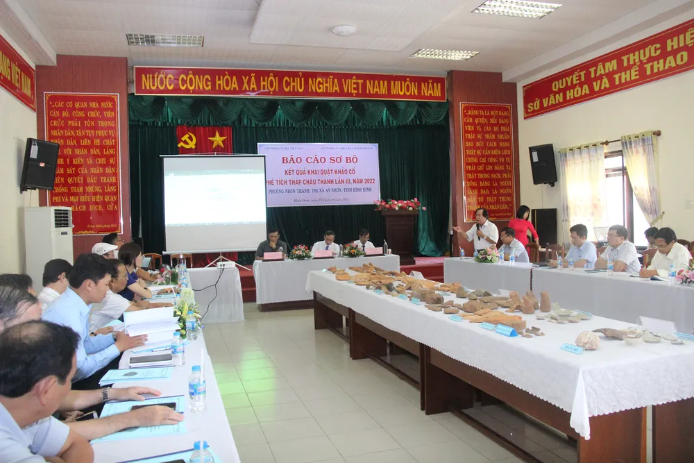 Sáng 18-8, Viện Khảo cổ học Việt Nam phối hợp với Sở VH-TT tỉnh Bình Định tổ chức hội nghị báo cáo sơ bộ kết quả khai quật khảo cổ phế tích tháp Châu Thành (thị xã An Nhơn, Bình Định) lần thứ 3, năm 2022.