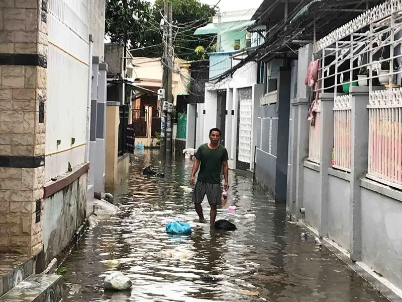 Tại TP Phan Rang – Tháp Chàm, trong 2 ngày qua, mưa lớn cũng khiến nhiều khu vực bị ngập sâu trong nước, các phương tiện tham gia giao thông rất khó khăn. Đặc biệt, tại khu vực phường Phủ Hà, nước ngập có đoạn gần 1m làm hàng trăm hộ sống trong vùng trũng nơi đây dường như bị cô lập.