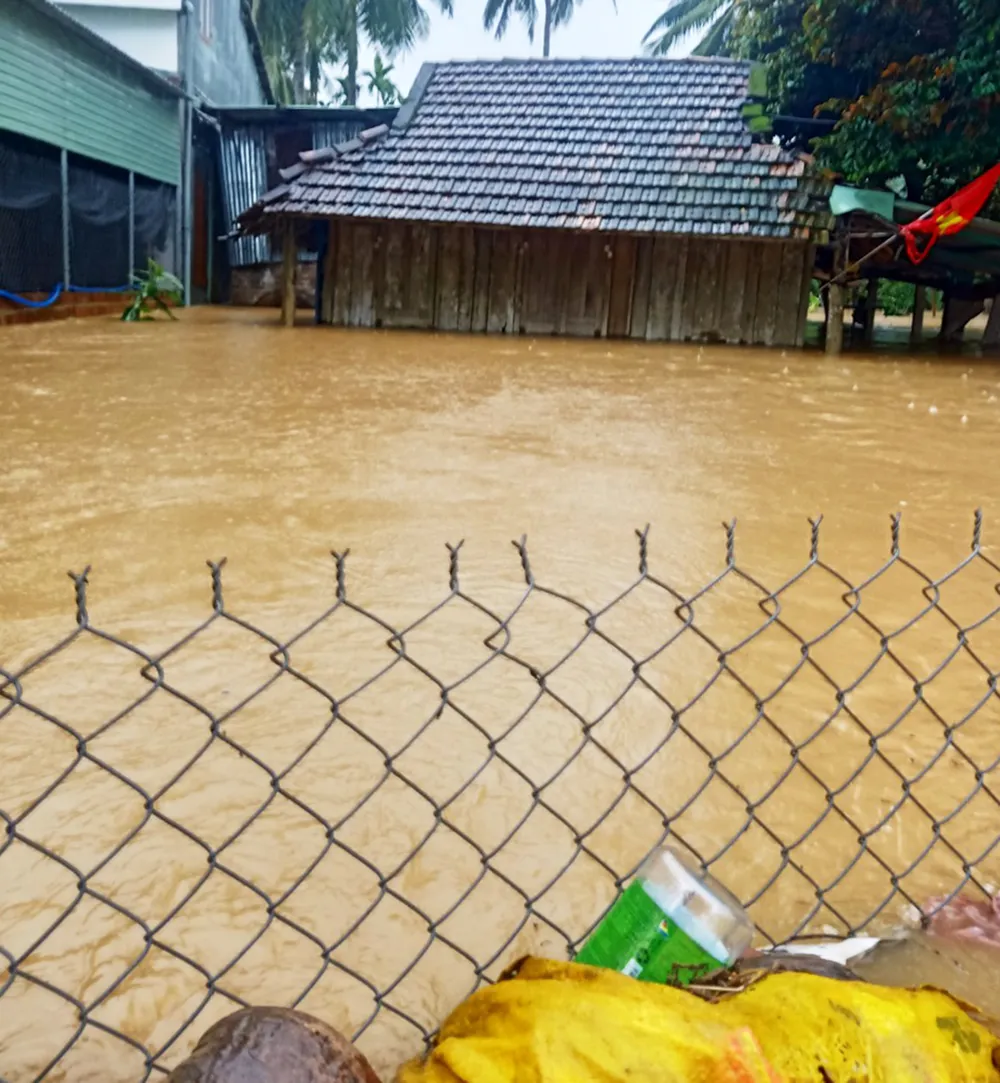 Nhà dân ở xã Ân Hảo Đông bị ngập sâu trong nước lũ