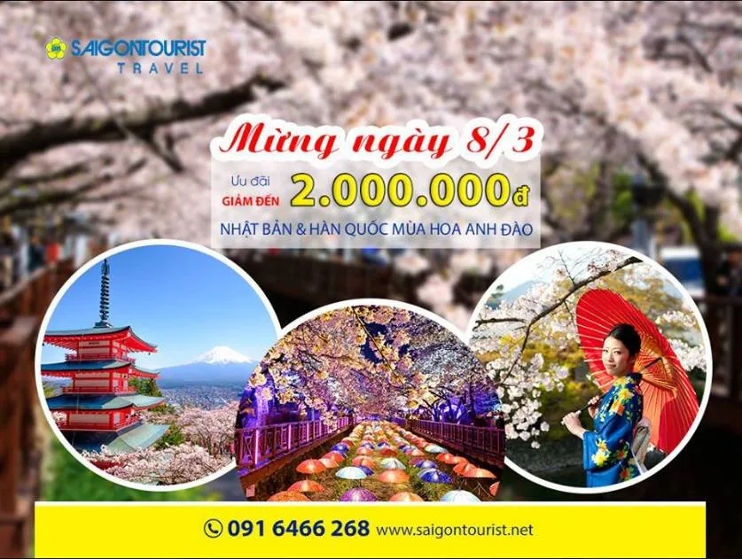 Lữ hành Saigontourist ưu đãi CHO PHỤ NỮ & NGƯỜI THÂN ĐI CÙNG TRONG THÁNG  3 – Tour Nhật và Hàn Quốc.