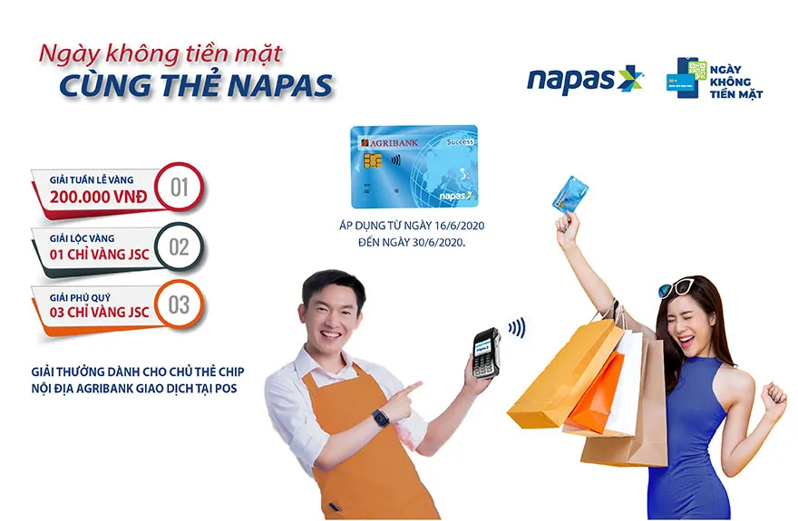 - Tặng 03 chỉ vàng SJC 9999 dành cho 05 khách hàng có tổng giá trị giao dịch thành công bằng thẻ chip nội địa Napas cao nhất trong số tất cả các khách hàng (không phân biệt khách hàng của Agribank và các Ngân hàng thương mại khác) tham gia trong thời gian diễn ra chương trình (từ 16-6-2020 đến hết 30-6-2020).