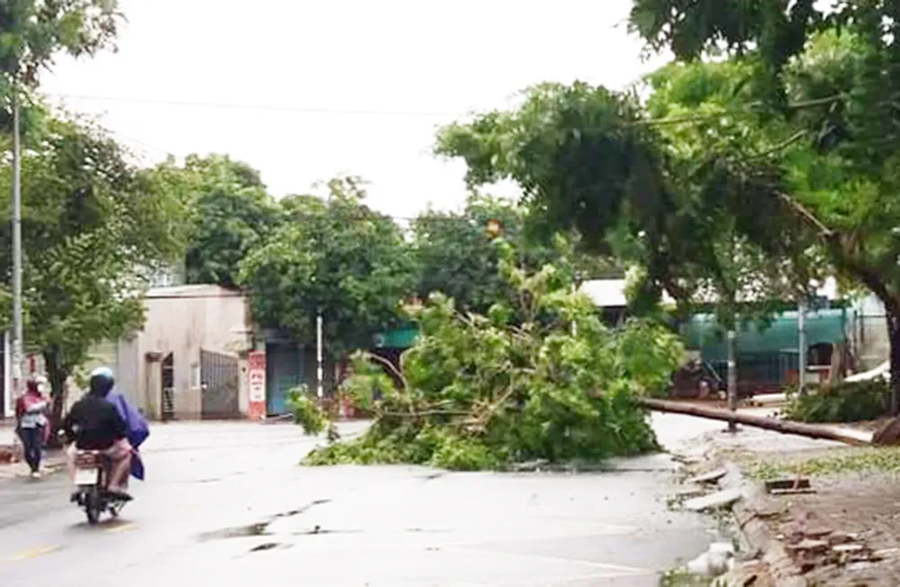 Tương tự, tại TP Quảng Ngãi, mưa bão đã khiến cho nhiều cây cối, công trình đổ ngã. Nhiều vùng dân cư ở thành phố này bị ngập sâu, gây ảnh hưởng chia cắt nhiều vùng dân cư.