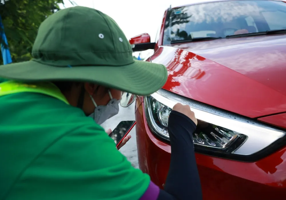 Nhân viên đơn vị cung cấp dịch vụ hướng dẫn tài xế. Ảnh: VIẾT CHUNG