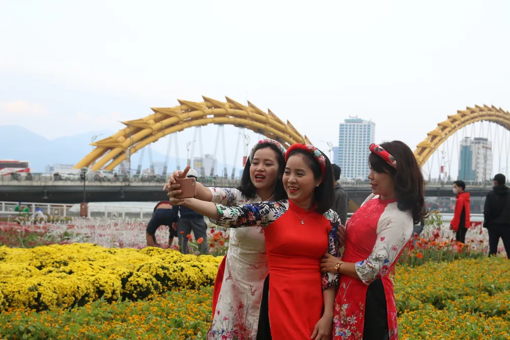 Các bạn trẻ tại Đà Nẵng dạo đường hoa xuân với áo dài trẻ trung, duyên dáng