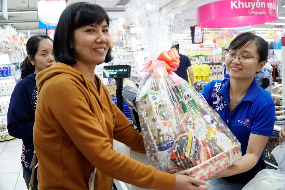 Đặc biệt trong dịp Tết năm nay, Co.opmart và Co.opXtra còn có thêm dịch vụ “độc lạ và tiện lợi” là giao 38 mẫu giỏ quà tết miễn phí trên toàn quốc và mâm cỗ cúng gia tiên ngày tết nấu sẵn tiện lợi.