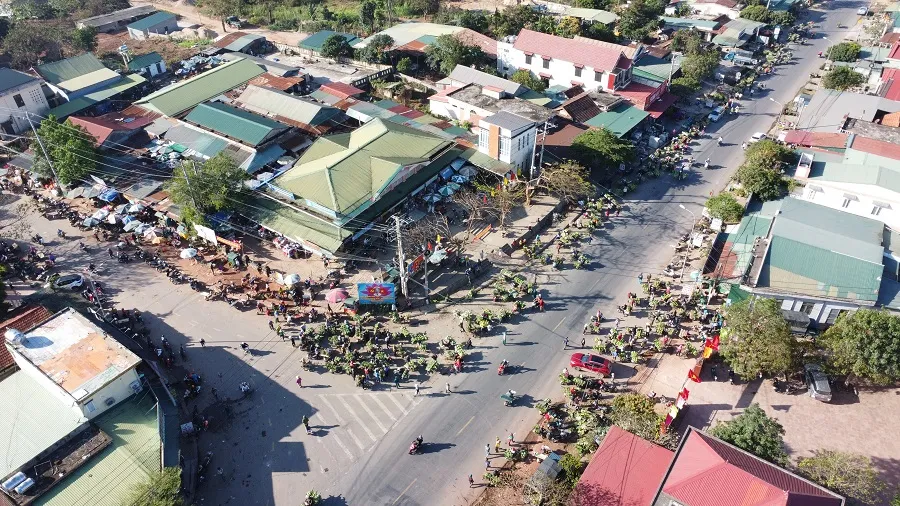 Phiên chợ chuối tết ở đây bắt đầu từ 4 giờ sáng và kết thúc khi trời tối với hàng ngàn người mua, kẻ bán