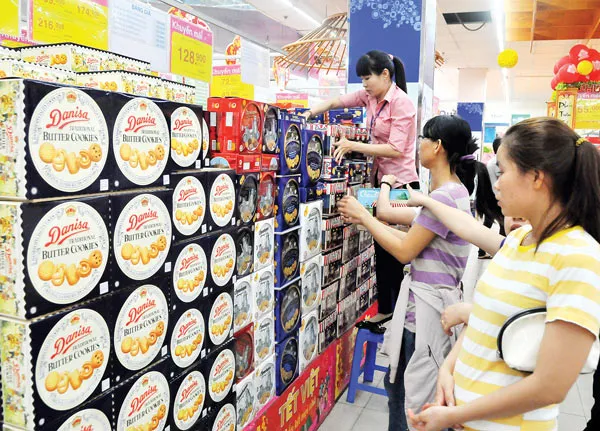 Thị trường tại TPHCM đã và đang bước vào giai đoạn mua sắm cao điểm hàng tết. Sức mua hàng tết đang tăng từng ngày. Hiện nhóm các mặt hàng được người tiêu dùng chọn mua nhiều nhất là bánh, kẹo, mứt, nước giải khát, thực phẩm công nghệ, hóa mỹ phẩm…