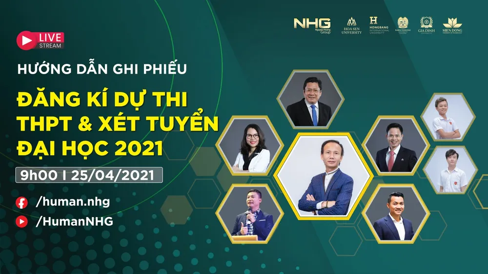 Nhằm giúp các bạn học sinh giải đáp những thắc mắc trong kỳ thi THPT và xét tuyển đại học sắp tới, 5 trường đại học thuộc hệ thống giáo dục Nguyễn Hoàng tổ chức buổi tư vấn trực tuyến: HƯỚNG DẪN GHI PHIẾU ĐĂNG KÝ DỰ THI THPT & XÉT TUYỂN ĐẠI HỌC 2021.
