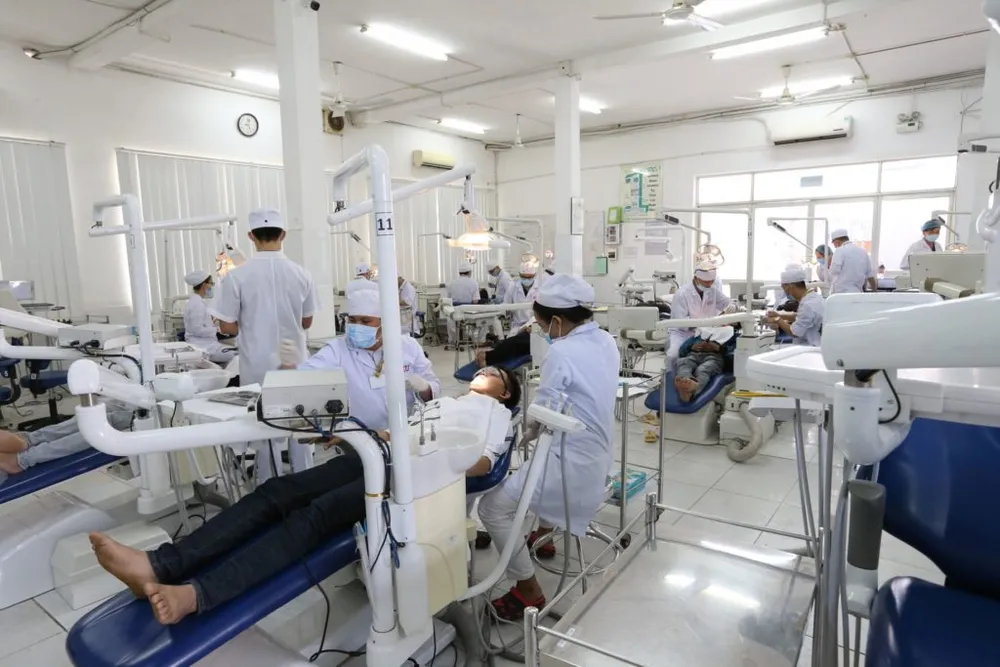 Sinh viên ngành Răng Hàm Mặt của Đại học Quốc tế Hồng Bàng trong giờ thực hành