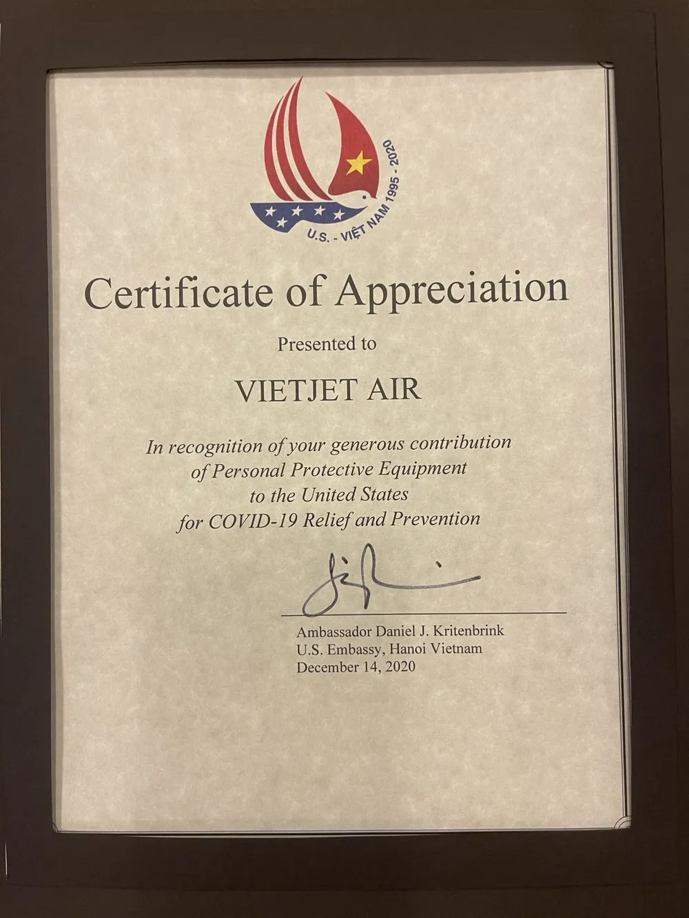 Chủ tịch Tổ chức Operation USA đã chia sẻ ngắn gọn về hành trình của 1 triệu chiếc khẩu trang y tế mà Vietjet gửi tặng người dân Mỹ đầu năm 2020 khi đại dịch vừa bùng phát, khi những chiếc khẩu trang y tế vô cùng khan hiếm trên toàn thế giới: "... Khi các thành phố tại Mỹ, Los Angeles nói riêng đang chiến đấu để kiểm soát sự lây lan của dịch bệnh và giảm thiểu tác động của nó, món quả ủng hộ hào phóng là những chiếc khẩu trang y tế từ Việt Nam đã góp phần quan trọng trong nỗ lực đương đầu với Covid-19 của chúng tôi. Các khẩu trang này đã được phân phát tới hơn 36 cộng đồng tại Los Angeles, New York và nhiều nơi khác trên nước Mỹ để giúp bảo vệ cho những đối tượng dễ bị ảnh hưởng nhất bởi dịch bệnh."