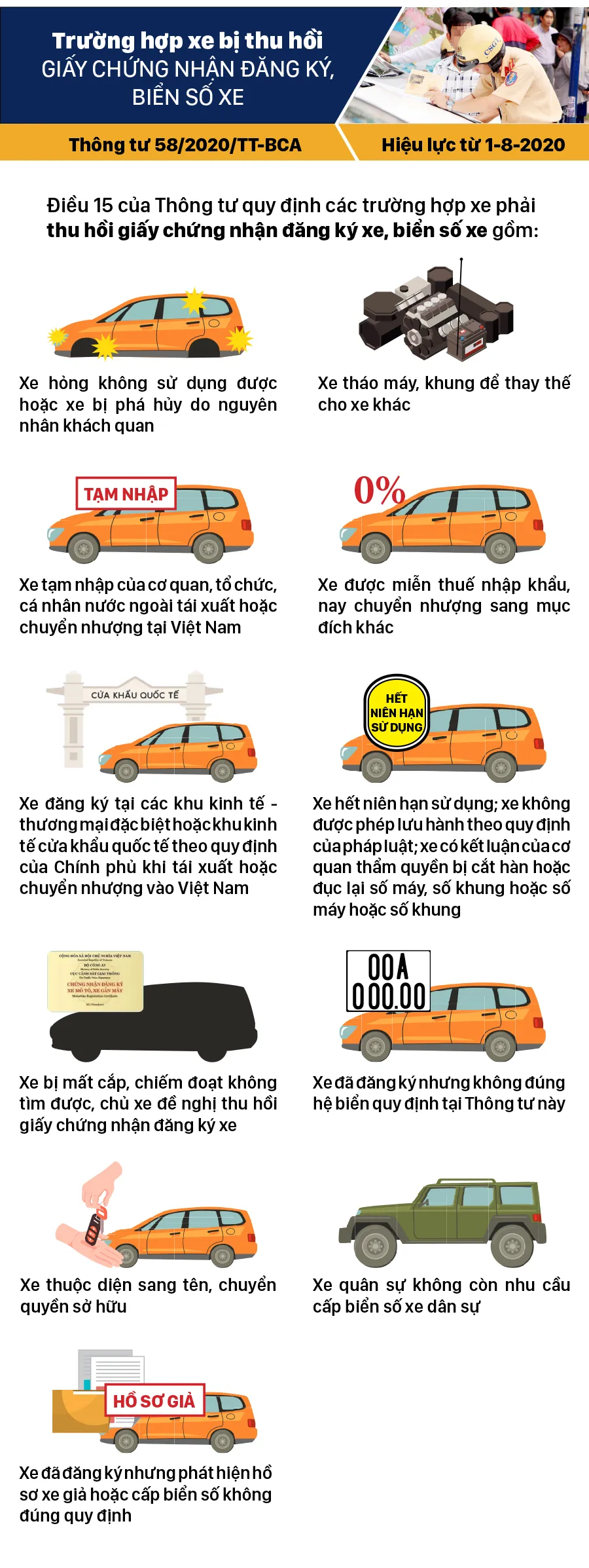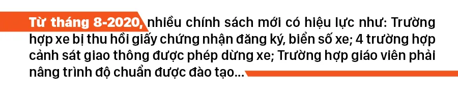 Từ tháng 8-2020, nhiều chính sách mới có hiệu lực như: Trường hợp xe bị thu hồi giấy chứng nhận đăng ký, biển số xe; 4 trường hợp cảnh sát giao thông được phép dừng xe; Trường hợp giáo viên phải nâng trình độ chuẩn được đào tạo...