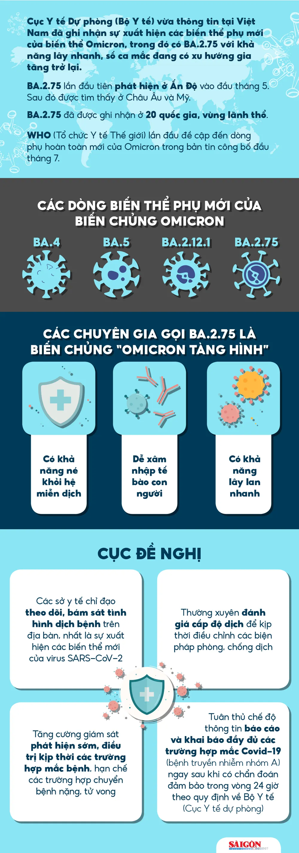 Cục Y tế Dự phòng (Bộ Y tế) vừa thông tin tại Việt Nam đã ghi nhận sự xuất hiện các biến thể phụ mới của biến thể Omicron, trong đó có BA.2.75 với khả năng lây nhanh, số ca mắc đang có xu hướng gia tăng trở lại.