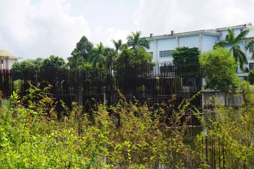Cách đây 7 năm, khi Dự án Khu dịch vụ chất lượng cao Bệnh viện Đa khoa tỉnh Quảng Ngãi (vốn đầu tư trên 1.100 tỷ đồng) được khởi công, nhiều người dân TP Quảng Ngãi vỡ òa vui sướng vì lần đầu tỉnh nhà có bệnh viện hiện đại bậc nhất miền Trung. Tuy nhiên, khi đến thăm dự án y tế ngàn tỷ này vào cuối tháng 11, chúng tôi chỉ thấy một khu đất được rào chắn bởi những vách tường bê tông rêu phủ. Leo lên tường rào, nhìn vào khu “y tế kỹ thuật cao”, chúng tôi không khỏi rùng mình vì cả khu đất chìm trong cỏ dại, bụi rậm um tùm như cánh rừng hoang thu nhỏ giữa lòng TP Quảng Ngãi. Giữa khu rừng hoang “bất đắc dĩ” này là một ao nước tù đọng, dày đặc những thanh thép rỉ sét...