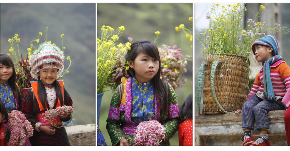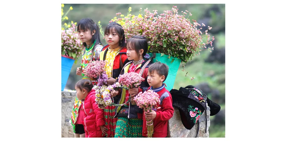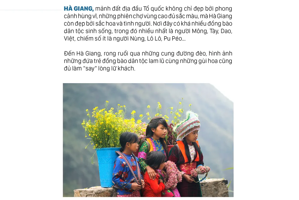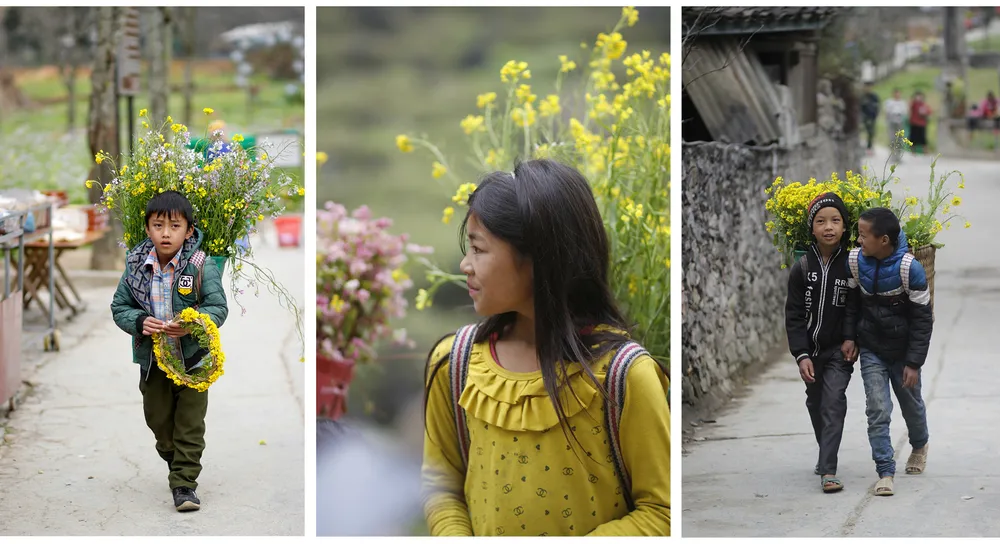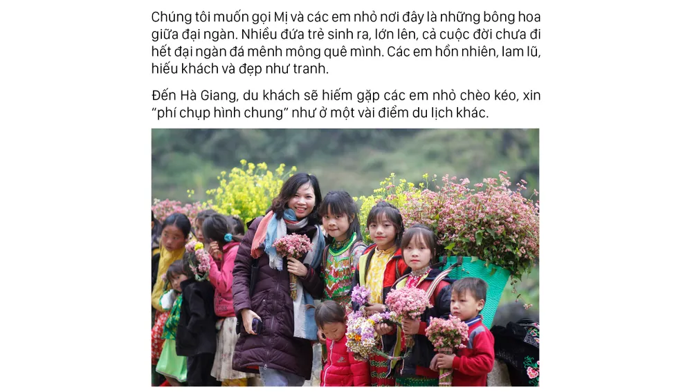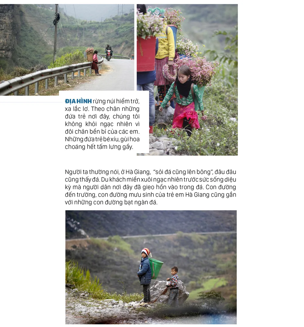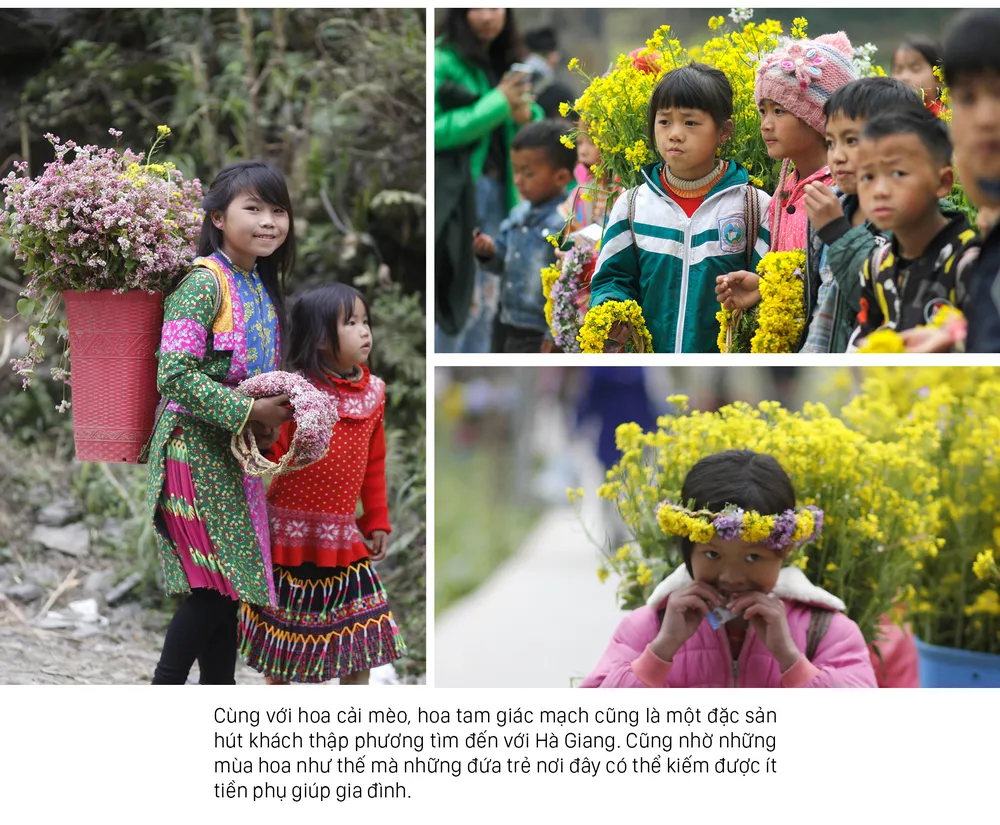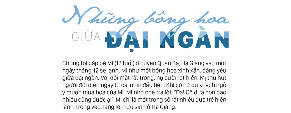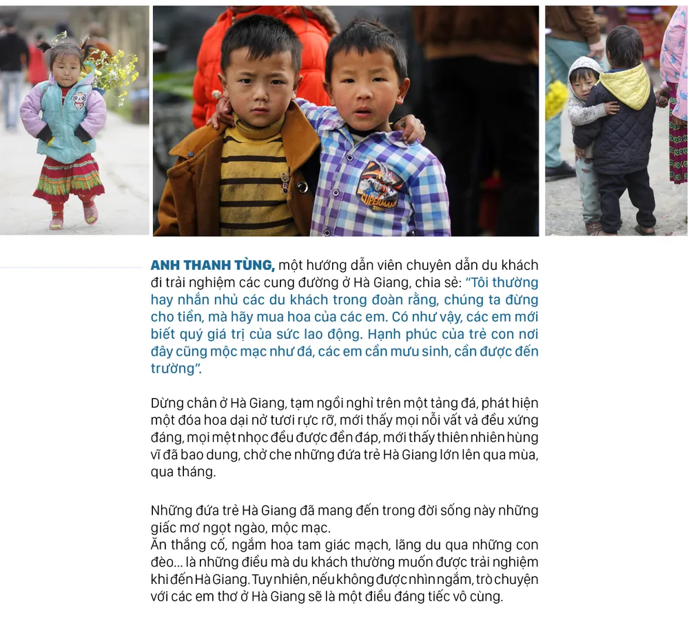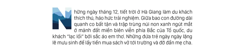 Những ngày tháng 12, tiết trời ở Hà Giang làm du khách thích thú, háo hức trải nghiệm. Giữa bao con đường dài quanh co bất tận và trập trùng núi non xanh ngút mắt ở mảnh đất miền biên viễn phía Bắc của Tổ quốc, du khách “lạc lối” bởi sắc áo em thơ. Những đứa trẻ ngày ngày lặng lẽ mưu sinh để lấy tiền mua sách vở tới trường và đỡ đần mẹ cha.