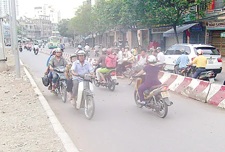 >> Đường Hải Thượng Lãn Ông, đoạn ngay dưới chân cầu Chà Và (phường 10, quận 5) đã được phân luồng nhưng người tham gia giao thông vẫn vô tư “xé rào” rẽ trái vào đoạn đường cấm. Ảnh: TRÙNG DƯƠNG