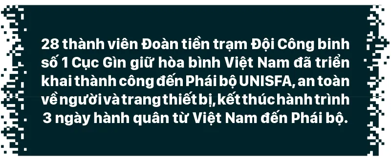 Đại tá Mạc Đức Trọng, Chỉ huy trưởng lực lượng Việt Nam tại phái bộ ở Abyei, Đội trưởng Đội Công binh số 1 cho biết, sau khi tiếp nhận hàng hóa, đoàn tiền trạm sẽ làm mọi công tác chuẩn bị cần thiết như thiết lập hệ thống lều bạt, container, điện, nước, Internet, nhà ăn, nhà bếp..., sẵn sàng cho đội hình chính gồm 156 người đến và hoạt động được ngay.