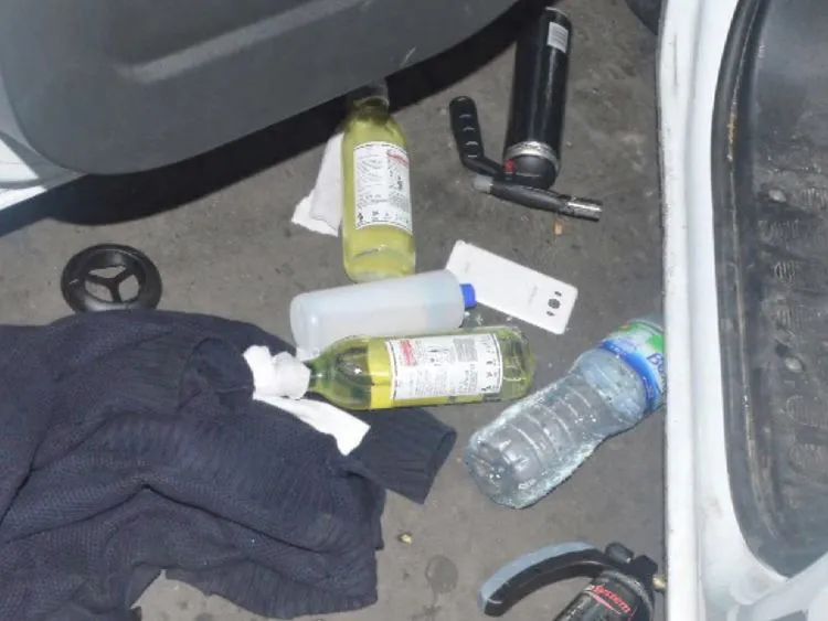 Trong xe của những kẻ tấn công, cảnh sát tìm thấy 13 quả bom xăng, làm bằng các chai rượu vang chứa đầy xăng, quấn khăn vải; 2 đèn khò có thể chúng định dùng để đốt các quả bom trong cuộc tấn công thứ 2.