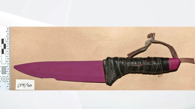 3 kẻ tấn công trang bị những con dao gốm màu hồng giống nhau dài 30cm, buộc cán dao vào cổ tay bằng dây da. Chúng cũng đeo đai bom tự sát giả làm bằng những chai nước nhựa quấn băng keo.