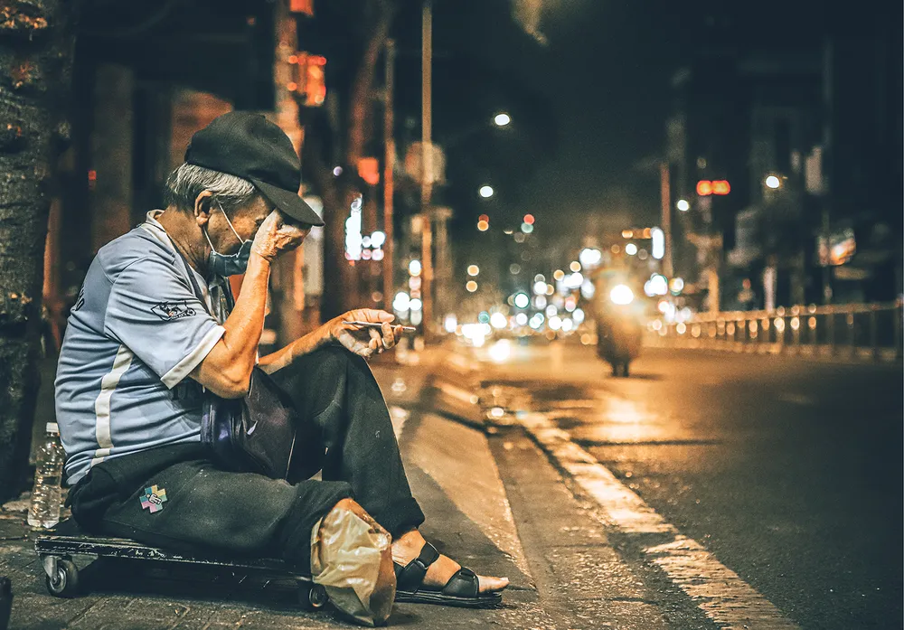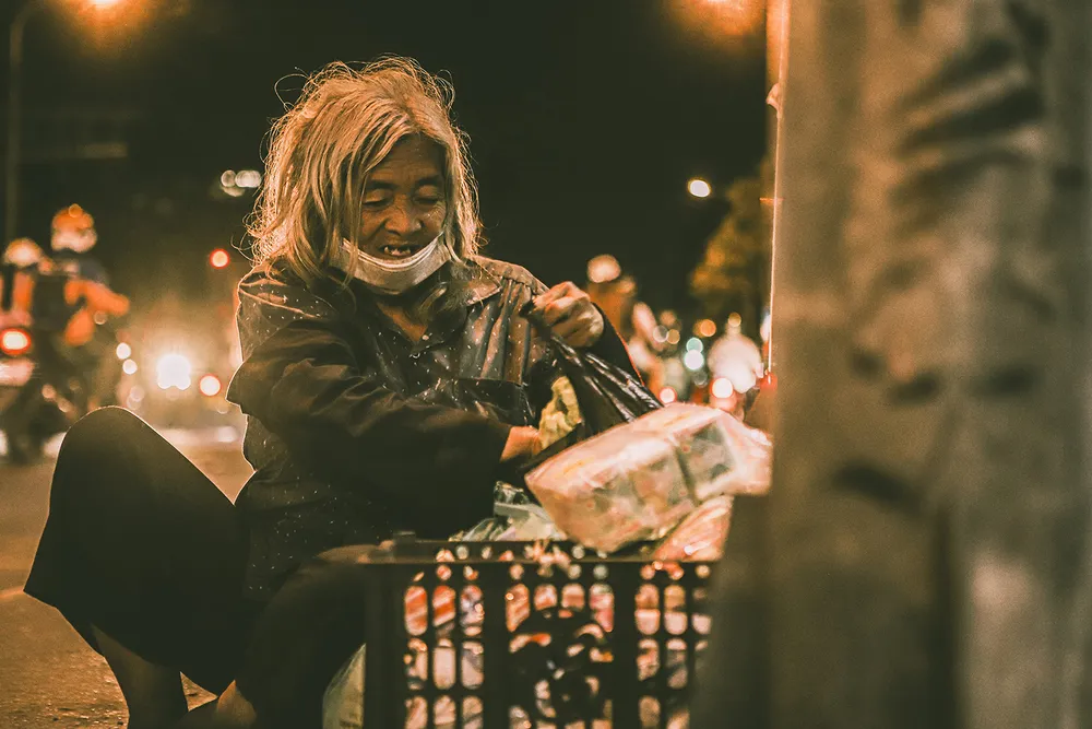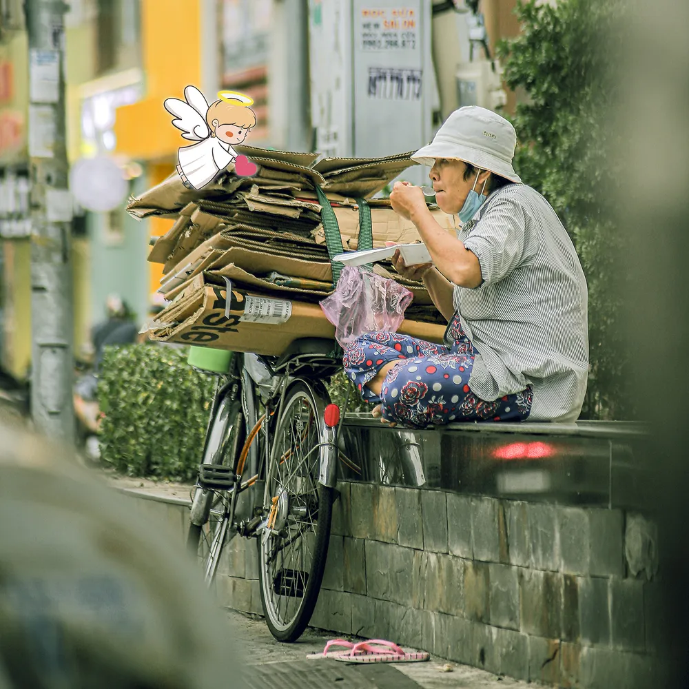 Ngoại Hương (72 tuổi, không người thân, nhặt ve chai giấy vụn ở đường Nguyễn Thị Thập, quận 7), kể: “Có bữa mưa quá trời, không có lụm được gì, có khi bán được 16.000 đồng, bà mua bánh mì không về ăn với muối tiêu”