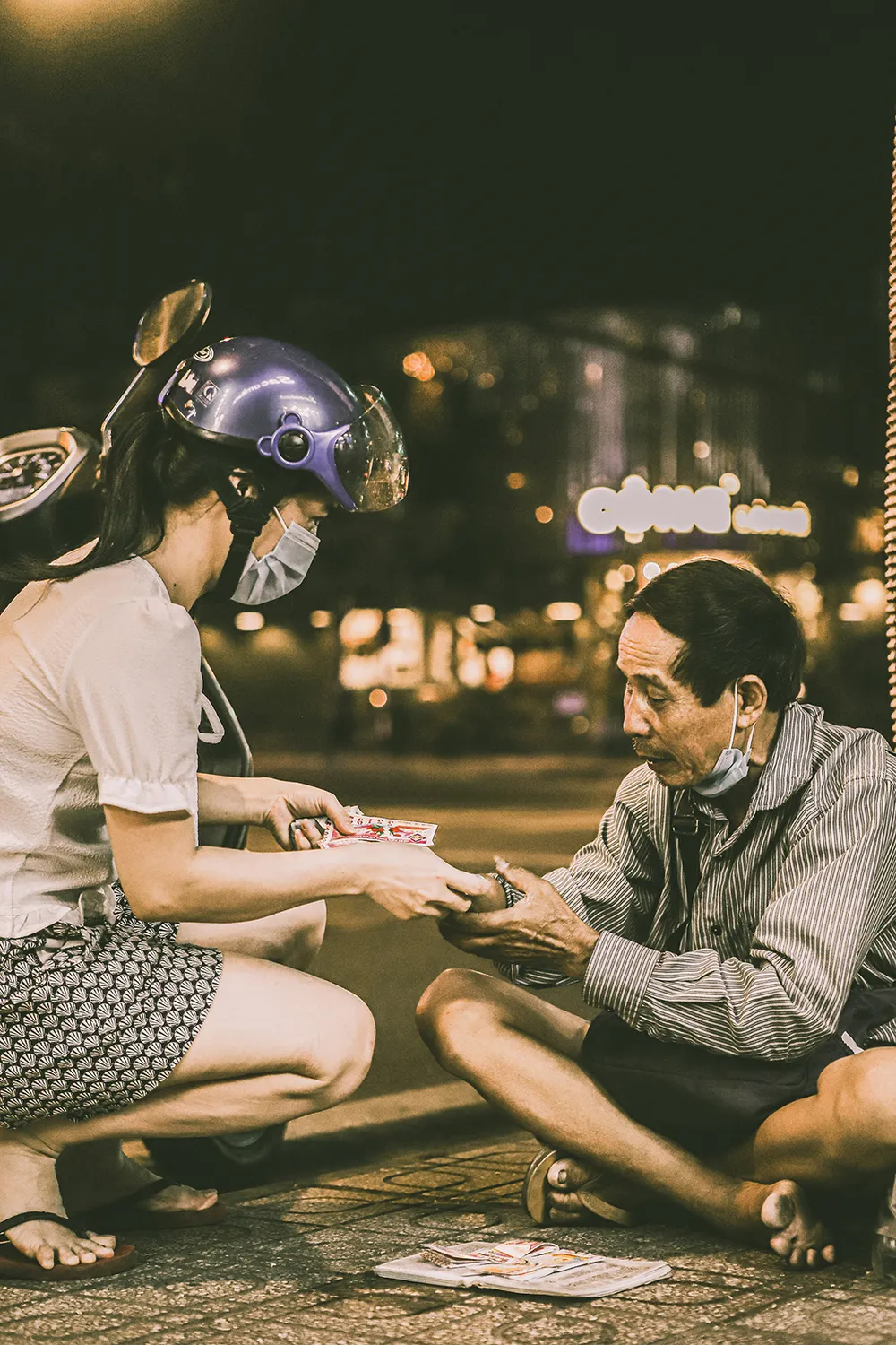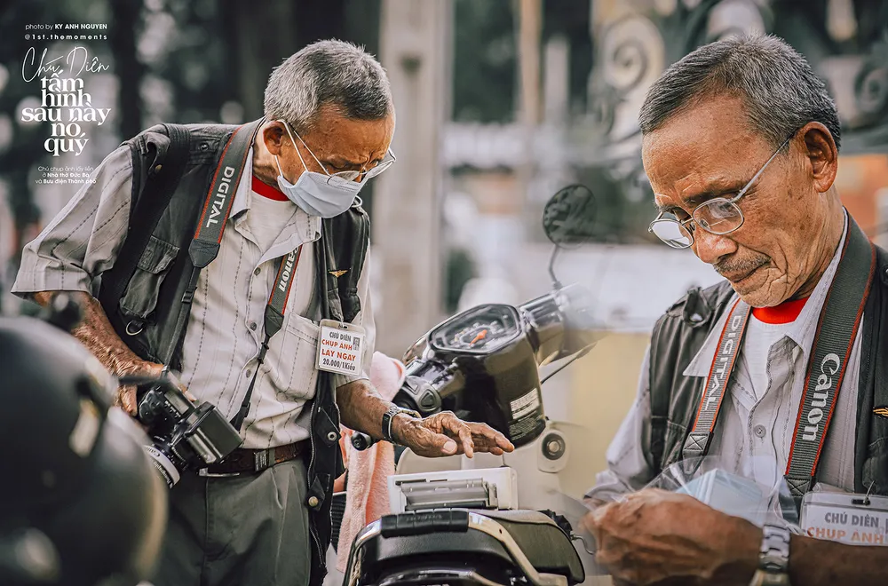 Chú Diên (80 tuổi, làm nghề chụp ảnh dạo trước Bưu điện TPHCM) dịch bệnh khó khăn, chú định bán chiếc xe để có tiền trang trải cuộc sống