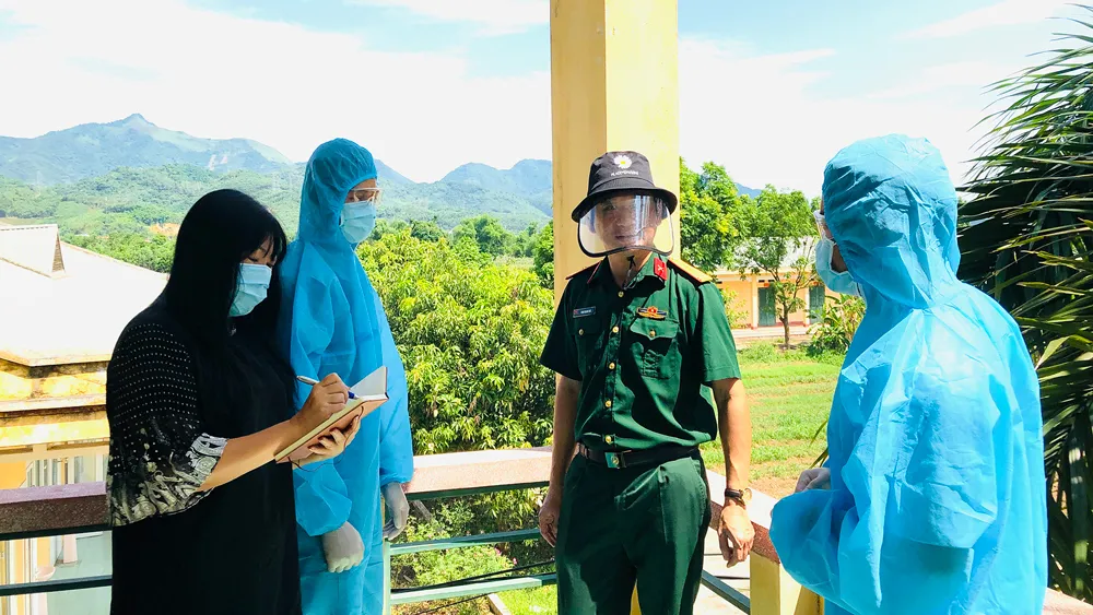 Trừ lực lượng phục vụ ở “vòng ngoài”, những quân nhân và cán bộ y tế làm nhiệm vụ ở “vòng trong” và có tiếp xúc gần với người cách ly đều là đối tượng cách ly với thời gian “bằng nhiều đợt cách ly cộng lại”. Tôi còn nhớ đêm đầu tiên trên chuyến xe quân sự vượt quãng đường dài 300km từ sân bay Vân Đồn về đây, Đại úy Nguyễn Hồng Thịnh, thuộc Bộ Chỉ huy Quân sự tỉnh Hải Dương và Thượng úy Nguyễn Văn Tuấn, Trung đoàn 2, Sư đoàn 395, Quân khu 3, cho biết, do liên tục đưa bà con về các khu cách ly từ cuối tháng 1 đến nay nên các anh cũng thuộc diện cách ly dài hạn và chưa thể về nhà. Thiếu tá Phạm Quang Huy thông tin, tại điểm cách ly ở Trung đoàn 814 này, từ ngày 26-3 đến nay đã liên tục tiếp nhận 4 đợt cách ly với 350 công dân Việt Nam trở về từ Đức, Hàn Quốc, Mỹ. Lực lượng quân đội, y tế phục vụ ở đây vẫn tiếp tục làm nhiệm vụ nếu còn những đợt đưa bà con về nước.