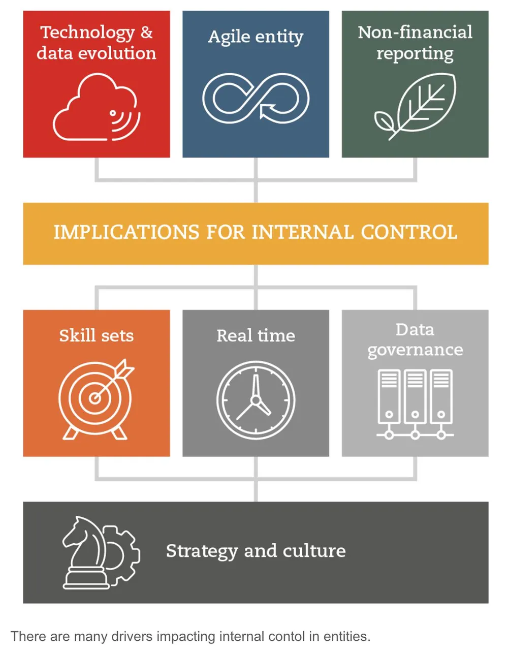 Báo cáo cũng đưa ra nhiều khuyến nghị và gợi ý về các hành động cần có để cải thiện kiểm soát nội bộ theo các chủ đề về các động lực chính của sự thay đổi - như chiến lược, chuyển đổi, con người, quy trình, công nghệ và dữ liệu.