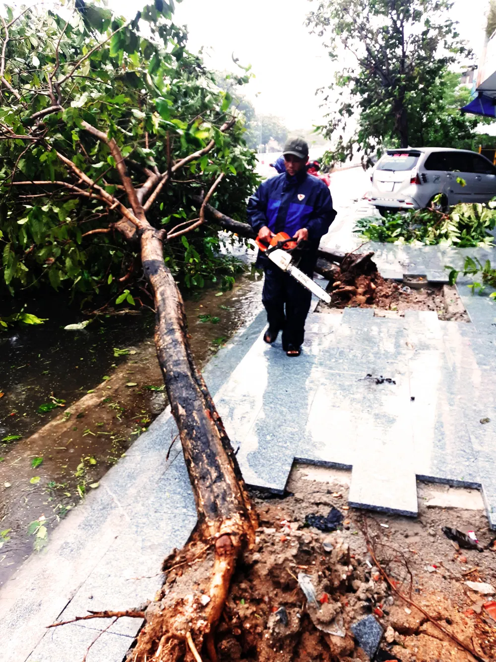 Một số cây xanh đã ngã đổ. Ảnh: VĂN NGỌC