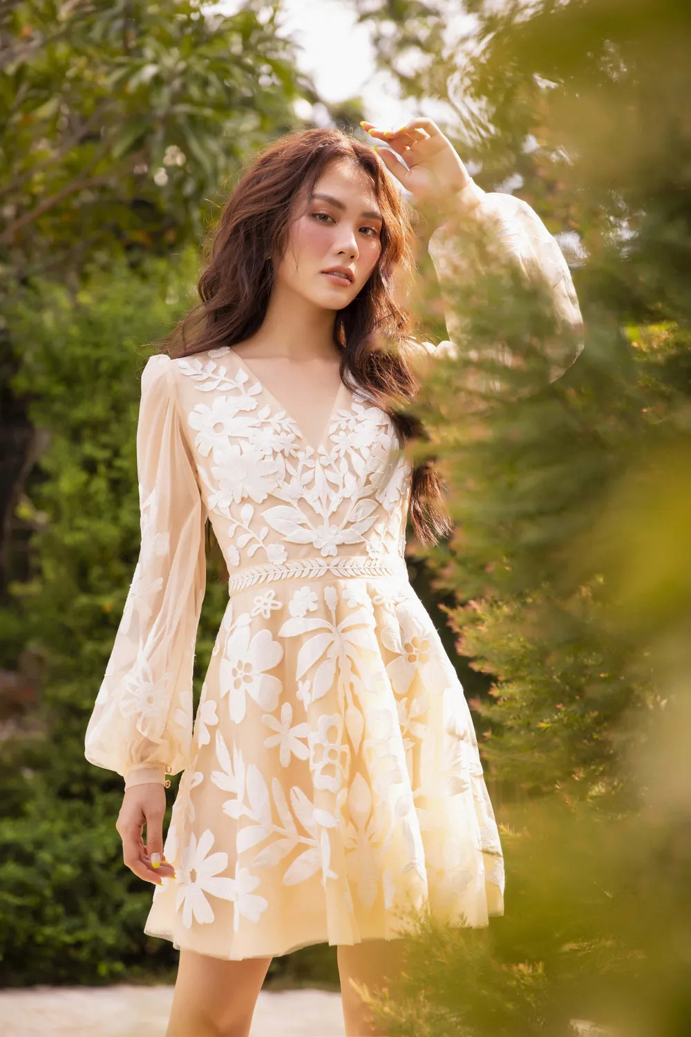 | Nét dịu dàng, nữ tính trong bộ ảnh lần này được nhà thiết kế gửi gắm vào nét đẹp nhẹ nhàng, trong trẻo của Hoa hậu Mai Phương, để mang đến hình ảnh thơ mộng như một nàng thơ nước Pháp |